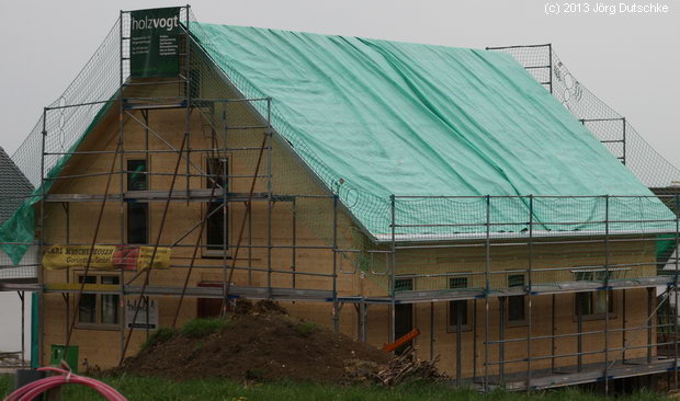 Seit der letzten Meldung über den Baufortschritt unseres Holz100-Hauses ist nun fast eine Woche vergangen. (Wo sind all die Tage denn hin?) Der Bau stand in dieser Zeit natürlich nicht still. Es wurde gewerkelt was das Zeug hält. Daher sei an dieser Stelle eine kurze Zusammenfassung angebracht: